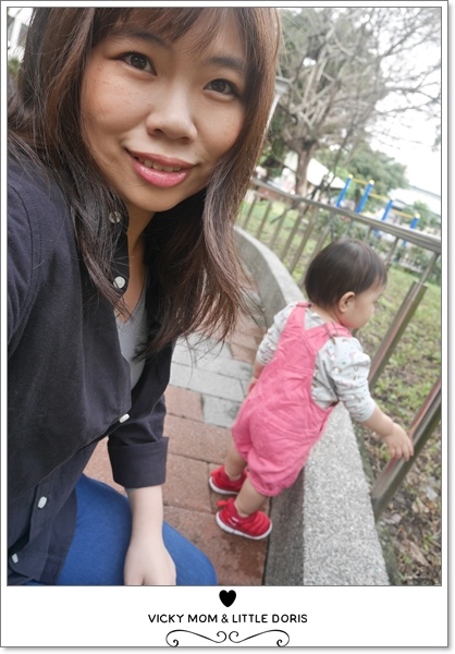 帶著寶貝去公園走走,穿上3GUN 熾柔發熱衣再穿上一件黑外套,牛仔褲輕鬆穿怎麼搭都好看