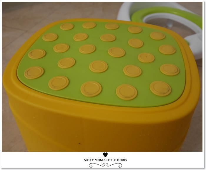 小椅子旁邊還有設計把手讓大人方便拿取,更細微的還有三個邊邊防滑設計真的很貼心設想週到阿!