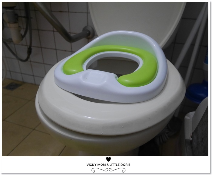 現在我們已經訓練一陣子了Doris也不會排斥上小馬桶哦~剛買來時5分鐘就說要上一次(很興奮的樣子