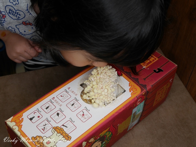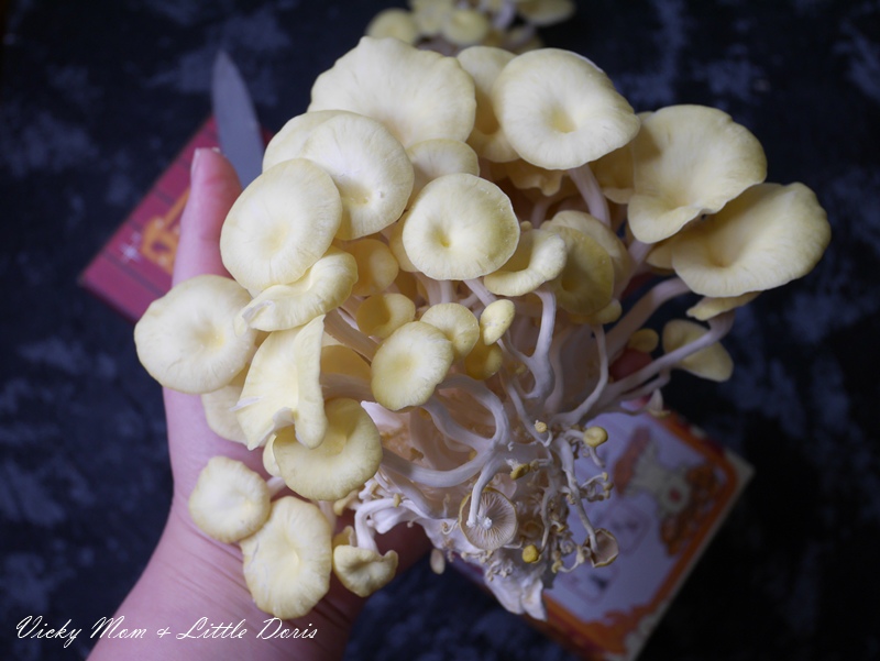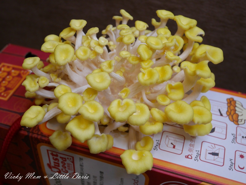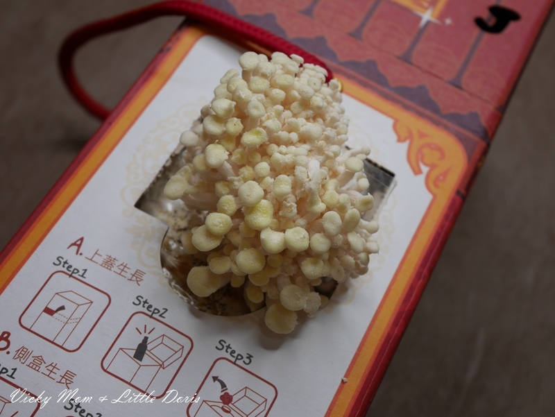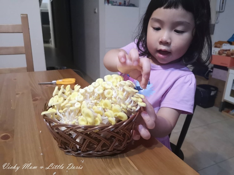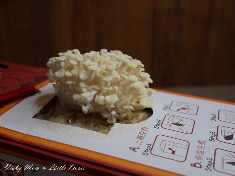 但對於我這個初學者真的很容易把植物給弄得整盆黑掉真的很苦惱…直到有一天在媽咪社團裡看到了自己採菇菇的體驗活動覺得很新奇,我只有帶Doris去採過草莓採菇菇真的很特別耶~而且寶貝又超愛吃菇類的,上網一查!什麼!在家裡也可以自己種菇菇!媽媽瞬間變的比孩子還興奮