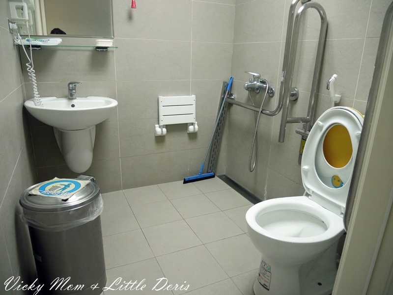 有牆壁式的小椅子馬桶的部分也很貼心的分成大人蓋跟小孩蓋
