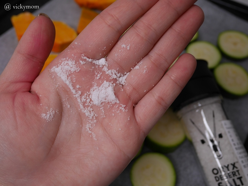 最後灑上一層薄薄的鹽放入烤箱中鹽烤