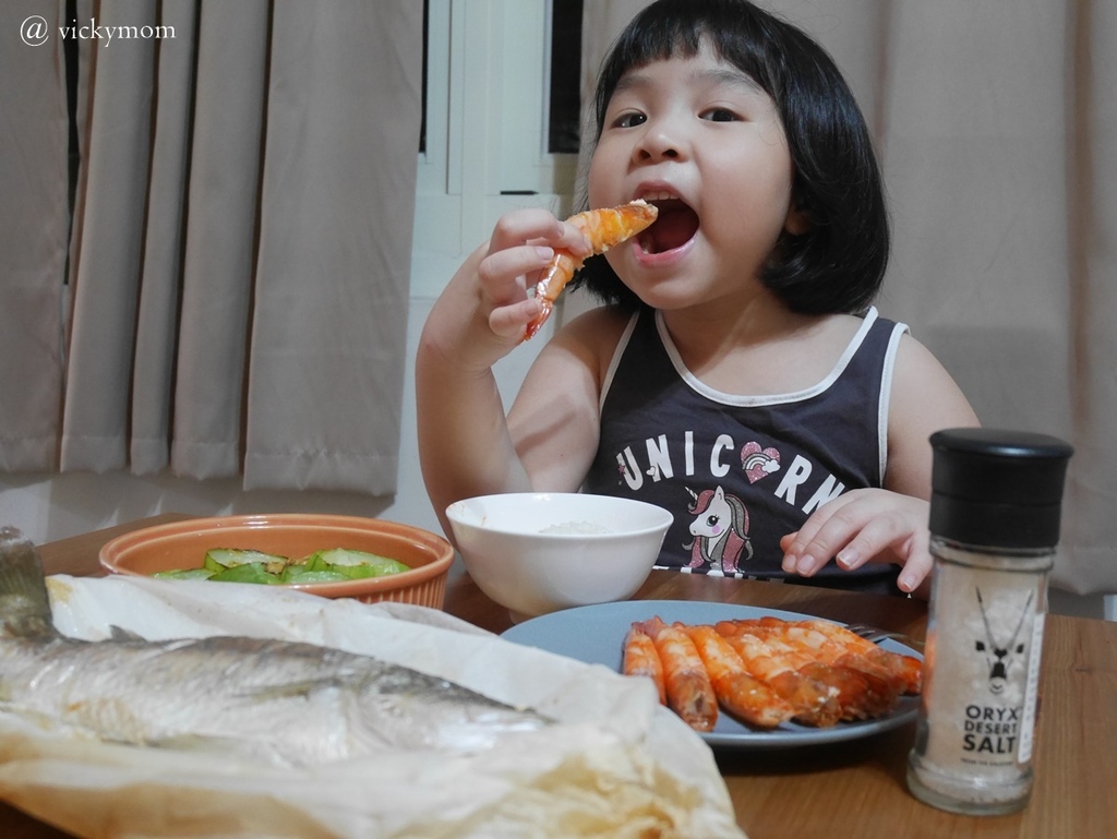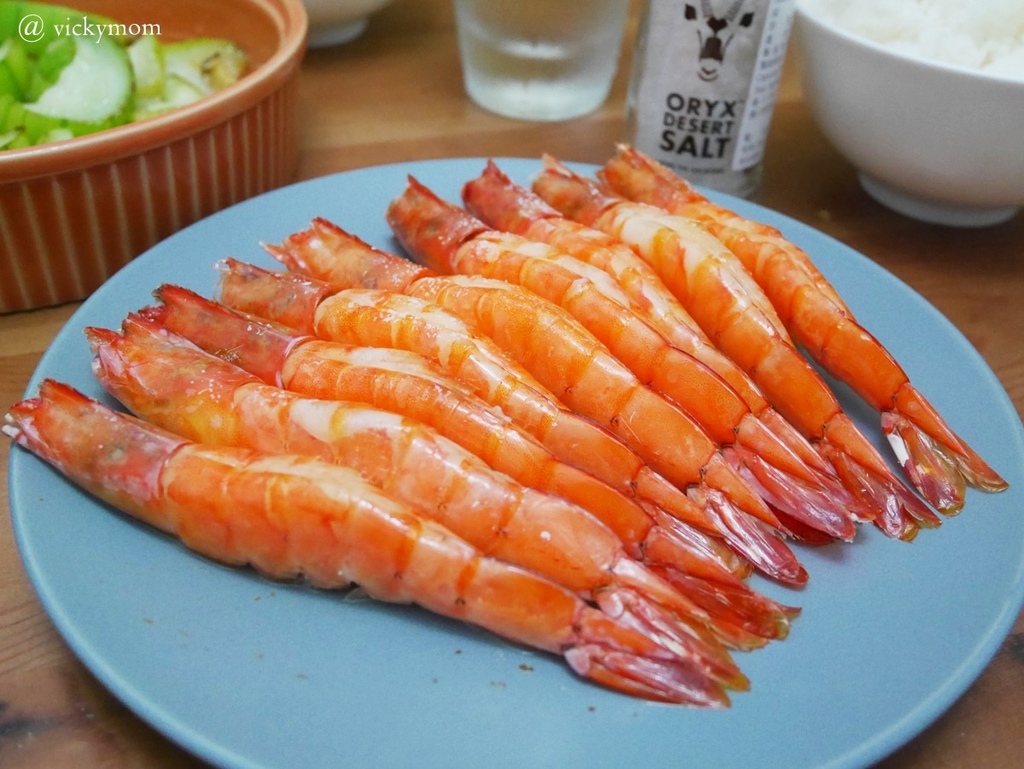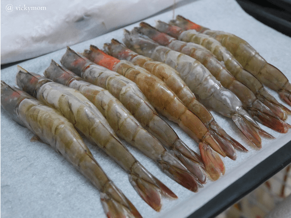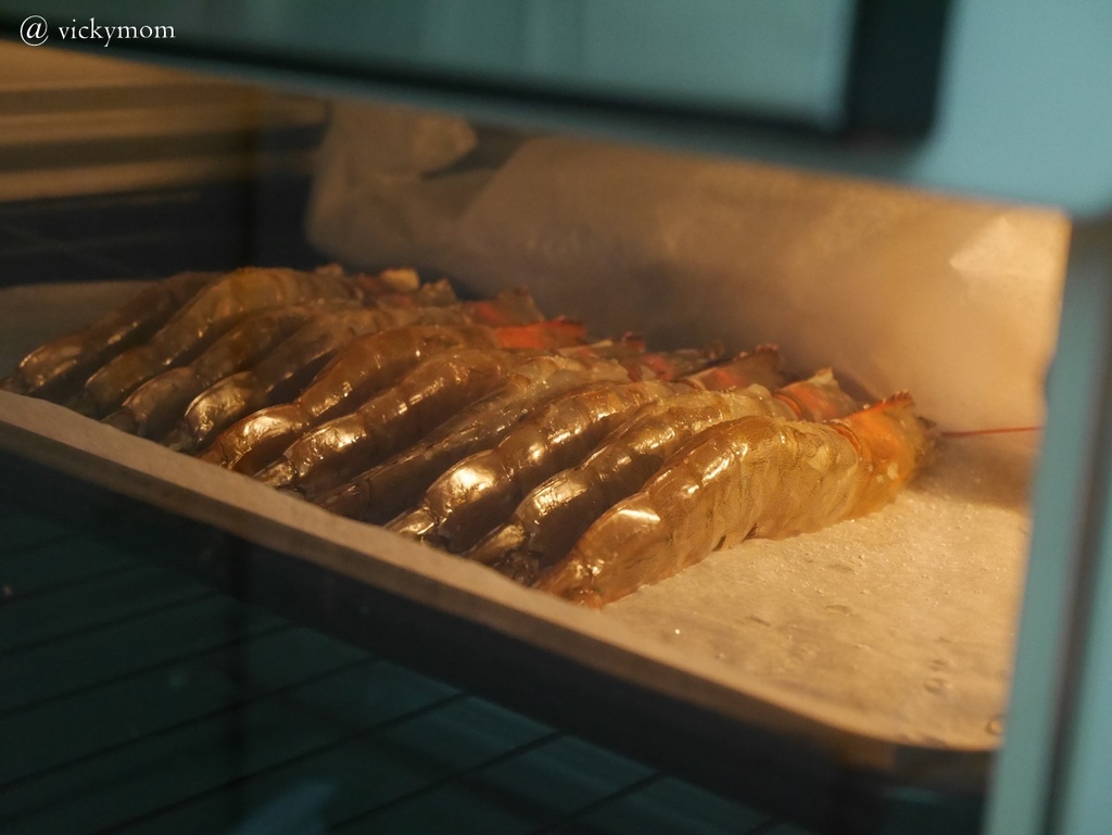 烤蝦更簡單我將蝦開背去腸沙撒,尖銳的地方去掉比較不擔心刺到小朋友