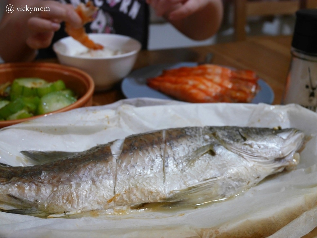鹽烤紙包魚吃的到鮮嫩的魚肉跟鮮甜